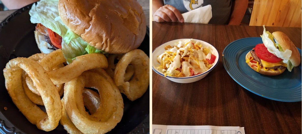 Many visitors can't resist the Mountain Burger, often recommended as the best in the area. The sweet potato fries are another highlight that customers love, often accompanied by a homemade dessert at the end of the meal.